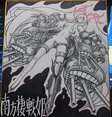 サークル名「太陽モアーイ」のユツァーサさんが描いた、南方棲戦姫の色紙。