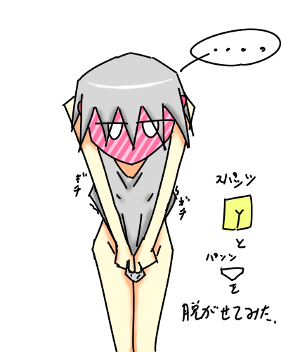 緋色にはオリコとは逆に下の服2着(スパッツとパンツ)を脱いでもらいました。