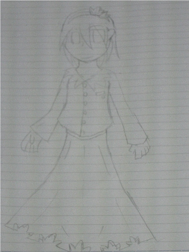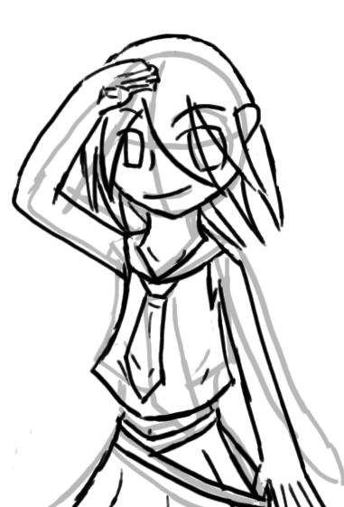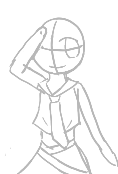 はじめは灰色で棒人間を描いて大体の構造を描いてから顔の輪郭や服を考えていきます。